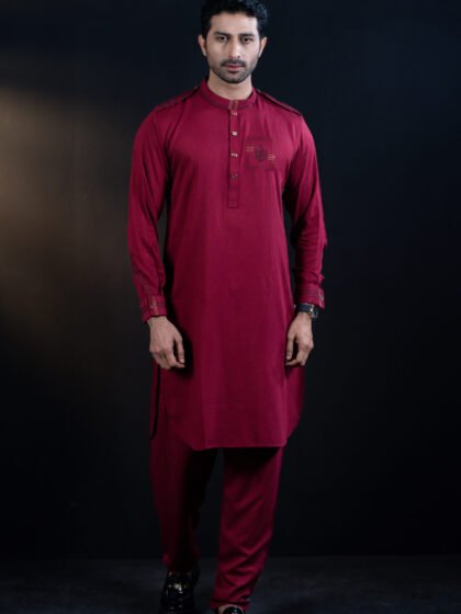 Unique Embroidery Kabli Set (Kabli + Pajama) Combo in Maroon